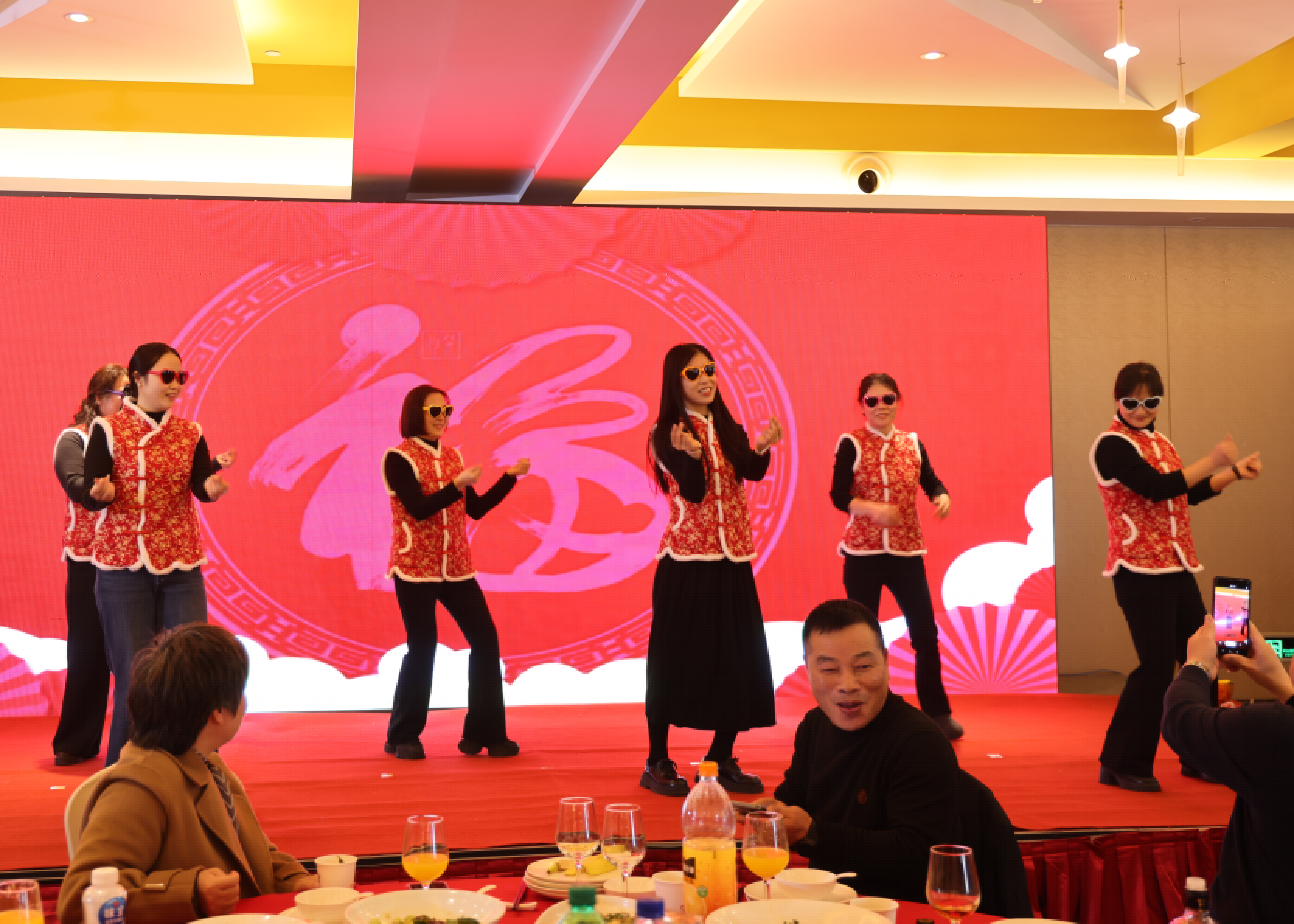 ? ? ? ? 總結(jié)表彰大會結(jié)束后,上午11:30,全體員工在指定區(qū)域有序集合,拍攝公司年度全體大合影,鏡頭定格下鴻利大家庭并肩同行的溫暖瞬間,留存下2025年攜手奮進的珍貴記憶,也凝聚起2026年同心致遠的強大合力。合影結(jié)束后,進入年會聯(lián)歡及午宴環(huán)節(jié),整場節(jié)歷時2-3小時,節(jié)目表演與午宴同步進行,為全體員工呈現(xiàn)了一場輕松愉悅、精彩紛呈的視聽盛宴。各部門員工的才藝節(jié)目輪番上演,充分展現(xiàn)了鴻利員工多才多藝、積極向上、朝氣蓬勃的精神風貌,現(xiàn)場掌聲、歡呼聲此起彼伏,氛圍熱烈而溫馨。